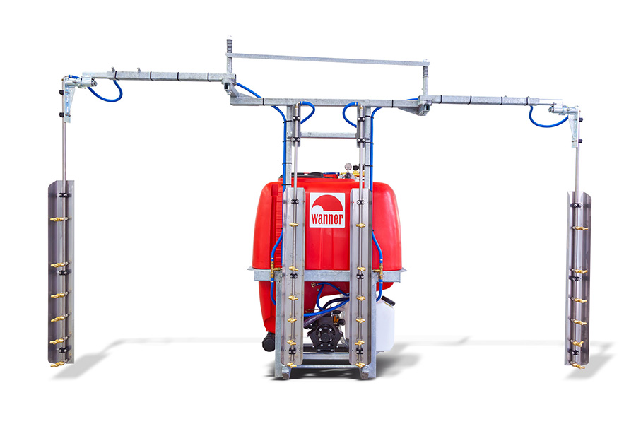 Durch unseren leichten und einfachen Spargelaufbau für die 2-reihige Behandlung haben wir einen günstigen Einstieg in die Überzeilentechnik für den Spargel geschaffen. Der Aufbau wird händisch geklappt und verfügt über Anfahrsicherungen bei den äußeren Düsenstäben sowie viele Verstellmöglichkeiten für Reihenabstand und Höhe.